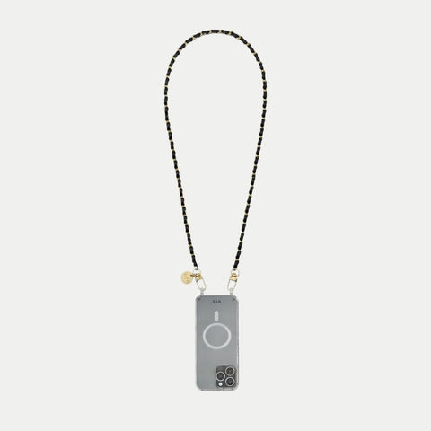 שרשרת לטלפון -זהב ועור שחור|דגם קלייר