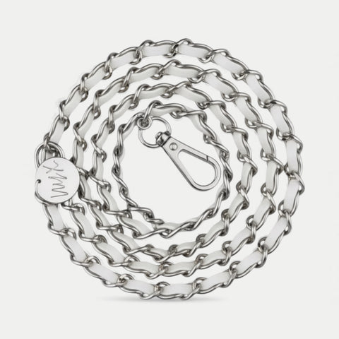 שרשרת לטלפון -כסוף ועור לבן|דגם קלייר