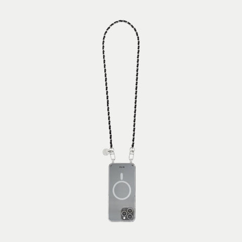 שרשרת לטלפון -כסוף ועור שחור|דגם קלייר